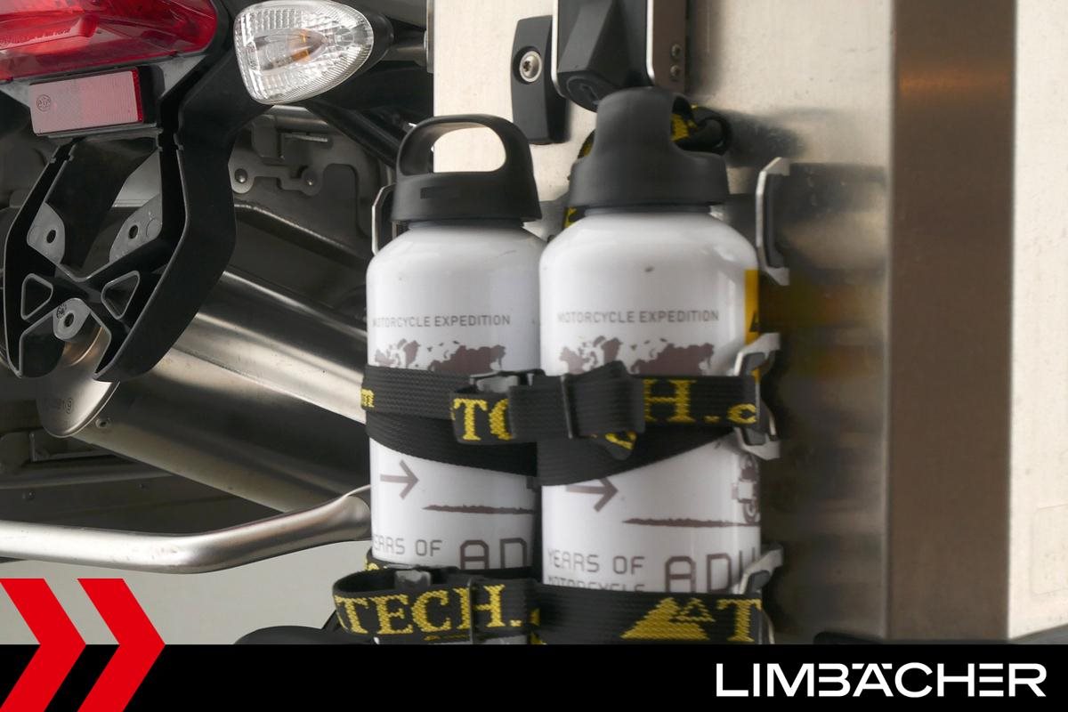 - BMW-Alukoffer mit Touratech-Flaschenhaltern und Flaschen