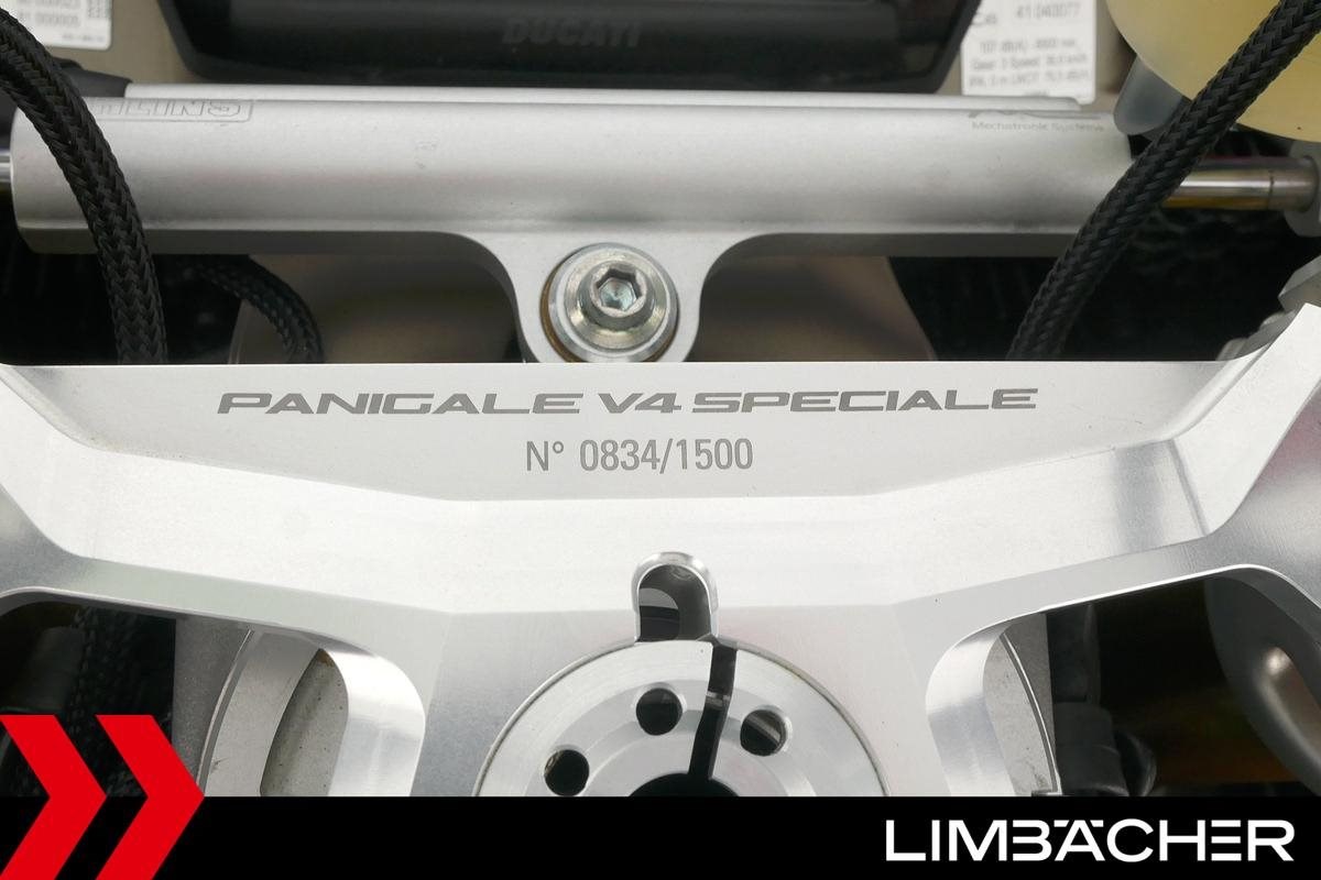 Fahrzeugzustand & Beschreibung:Eine scheckheftgepflegte Ducati Panigale V4 Speciale aus erster Hand in Topzustand u.a. als limitierte Auflage 0834/1500 mit Öhlins-Fahrwerk.