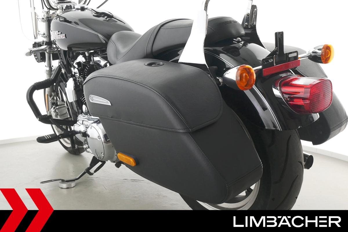 Fahrzeugzustand & Beschreibung:Eine Harley-Davidson Sportster XL 1200 T Superlow in gepflegtem Zustand u.a. mit HD-Lederkoffer-System und Touring-Windschild.