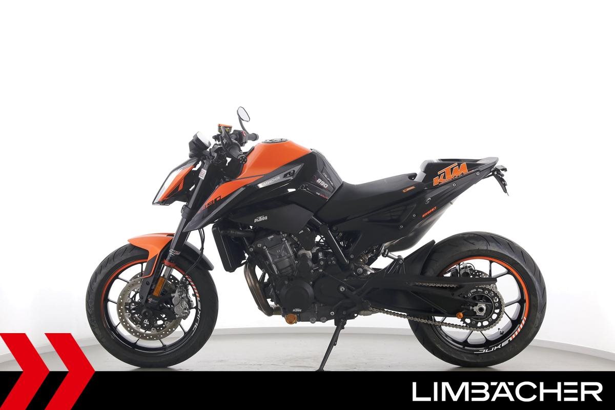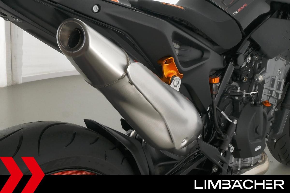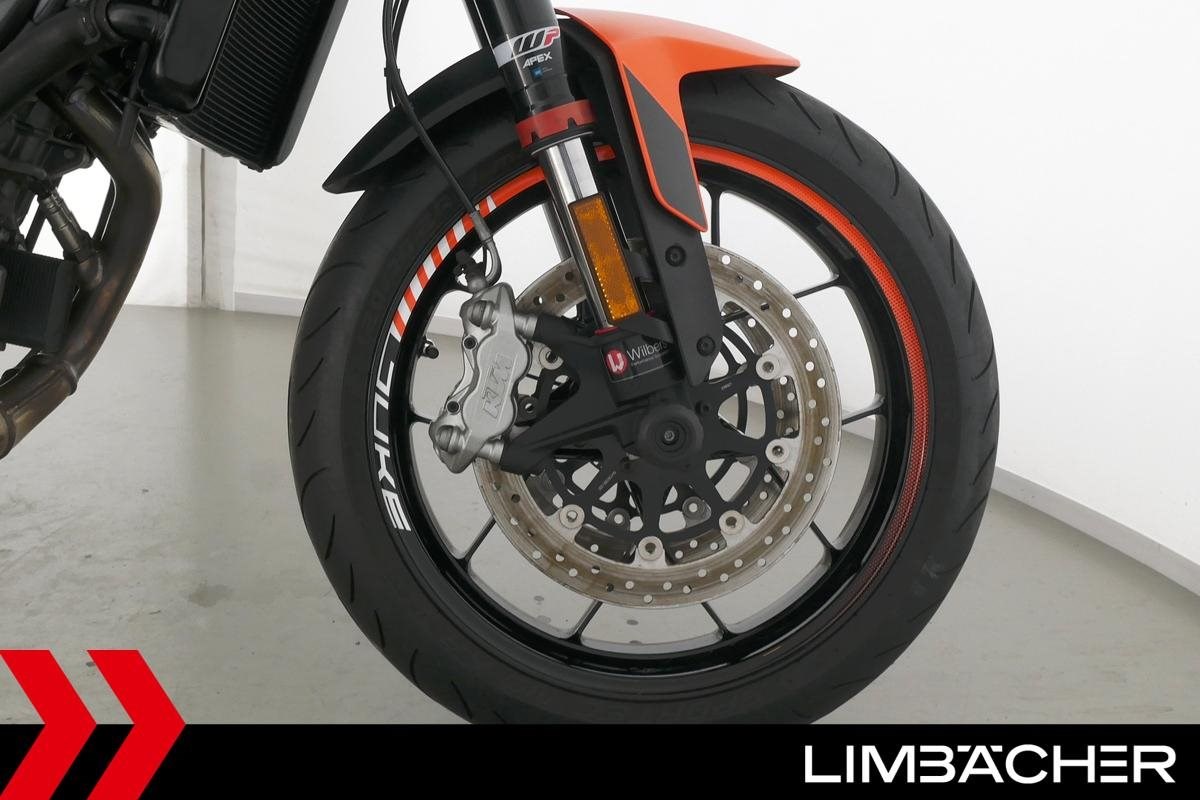 Eine scheckheftgepflegte KTM 890 Duke aus zweiter Hand in sehr gepflegtem Zustand u.a. mit Wilbers-Federbein sowie kurzem Kennzeichenhalter.