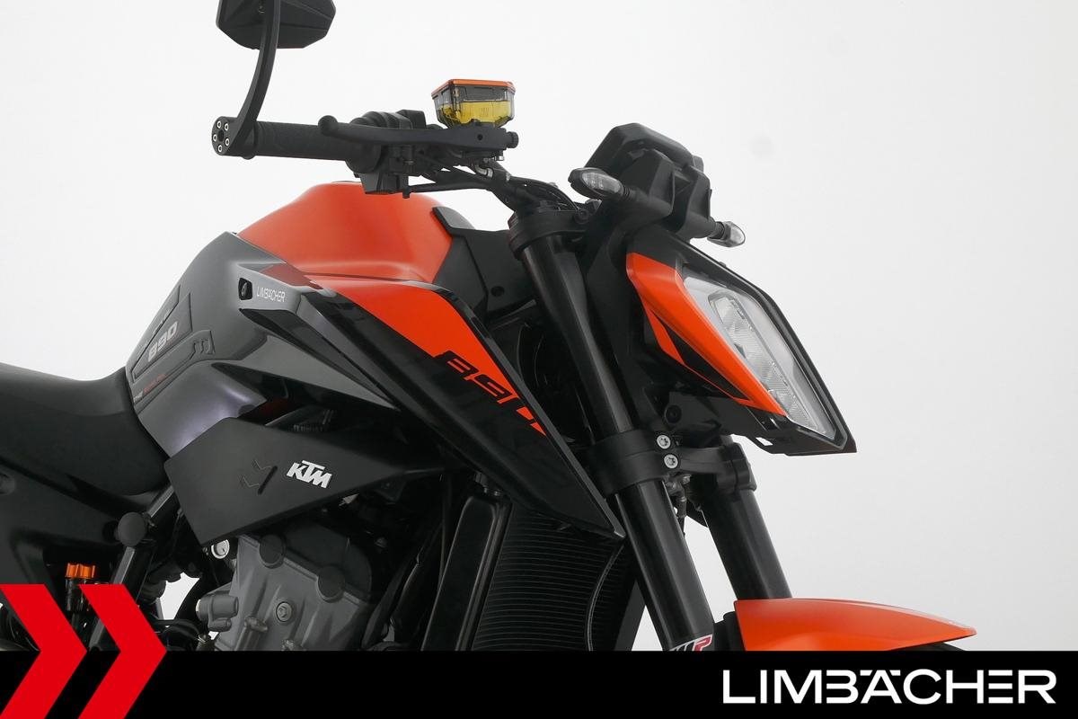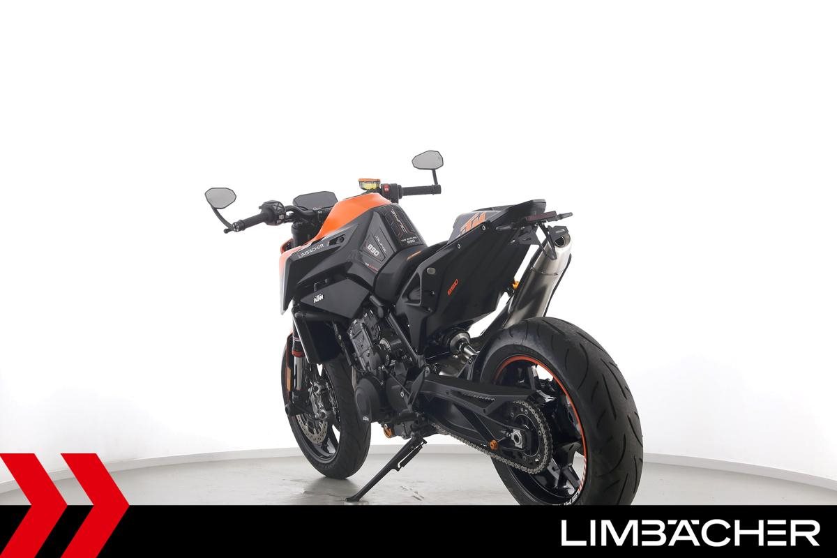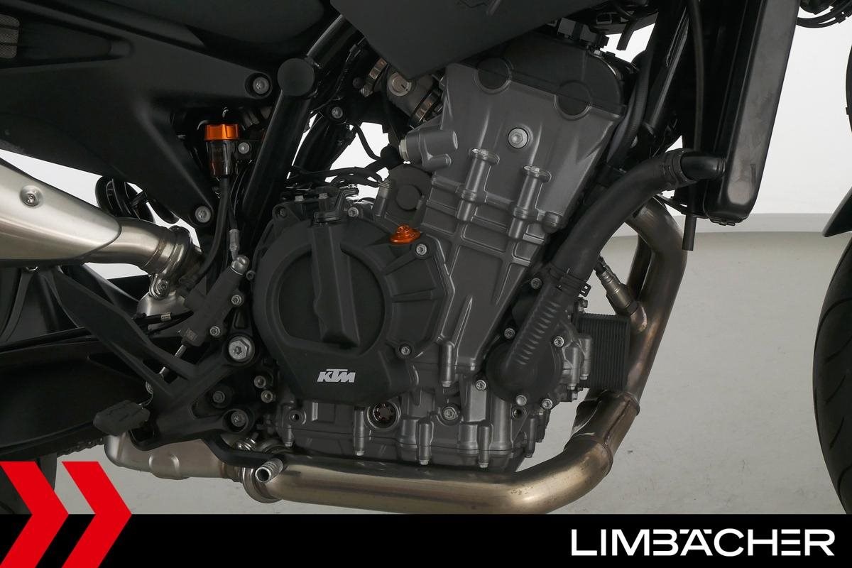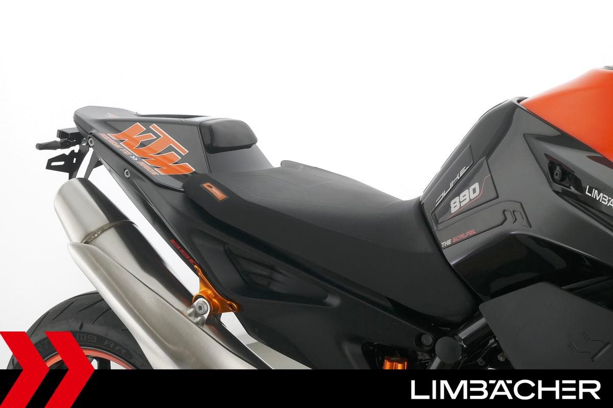 Eine scheckheftgepflegte KTM 890 Duke aus zweiter Hand in sehr gepflegtem Zustand u.a. mit Wilbers-Federbein sowie kurzem Kennzeichenhalter.