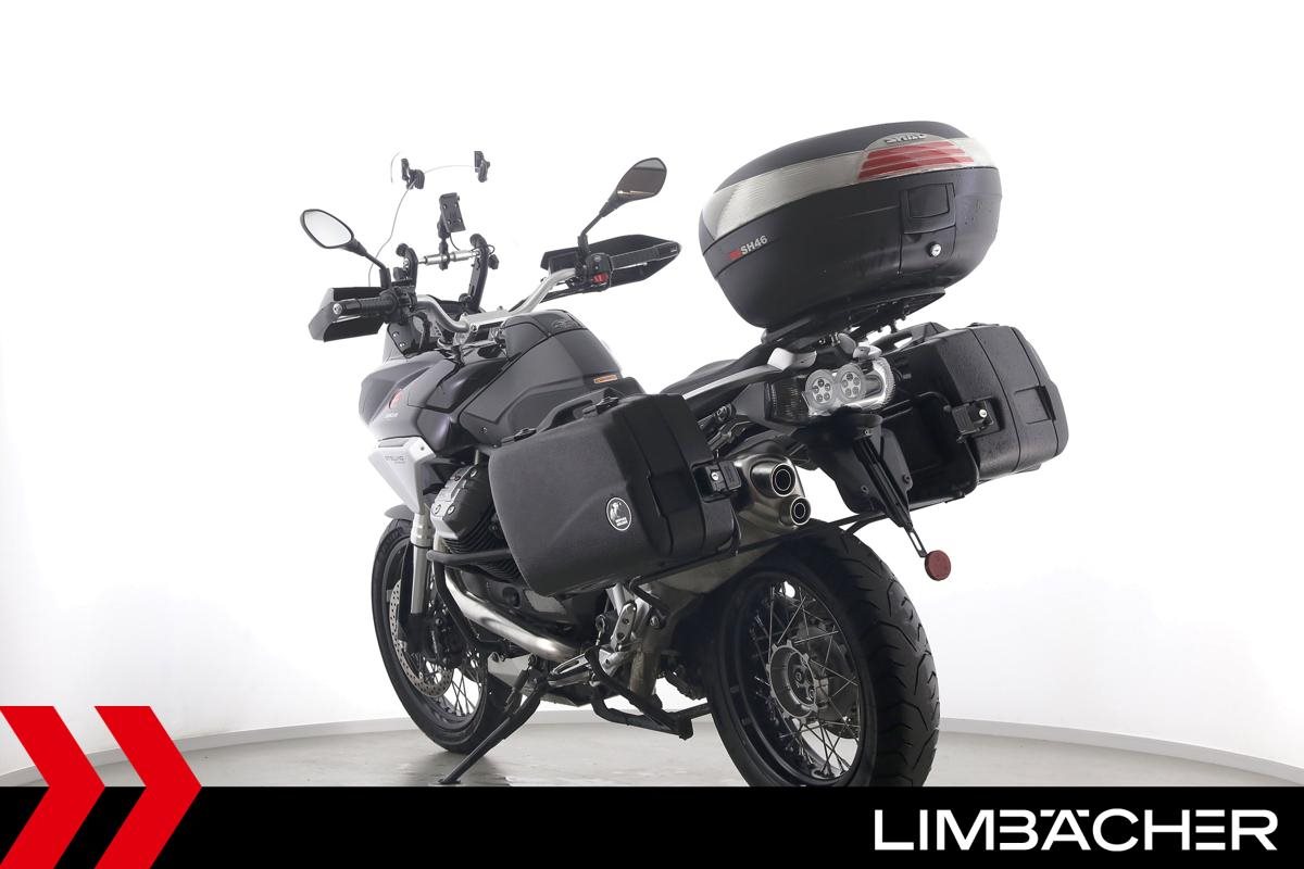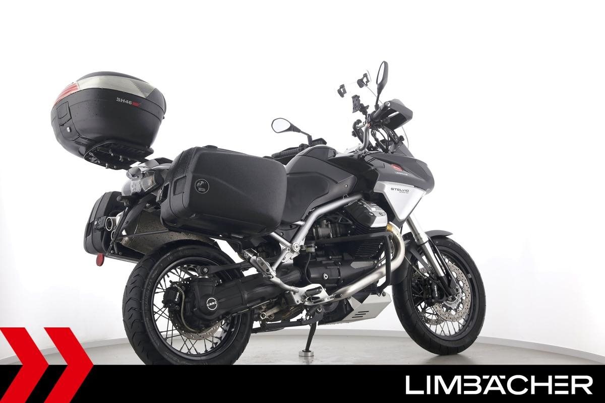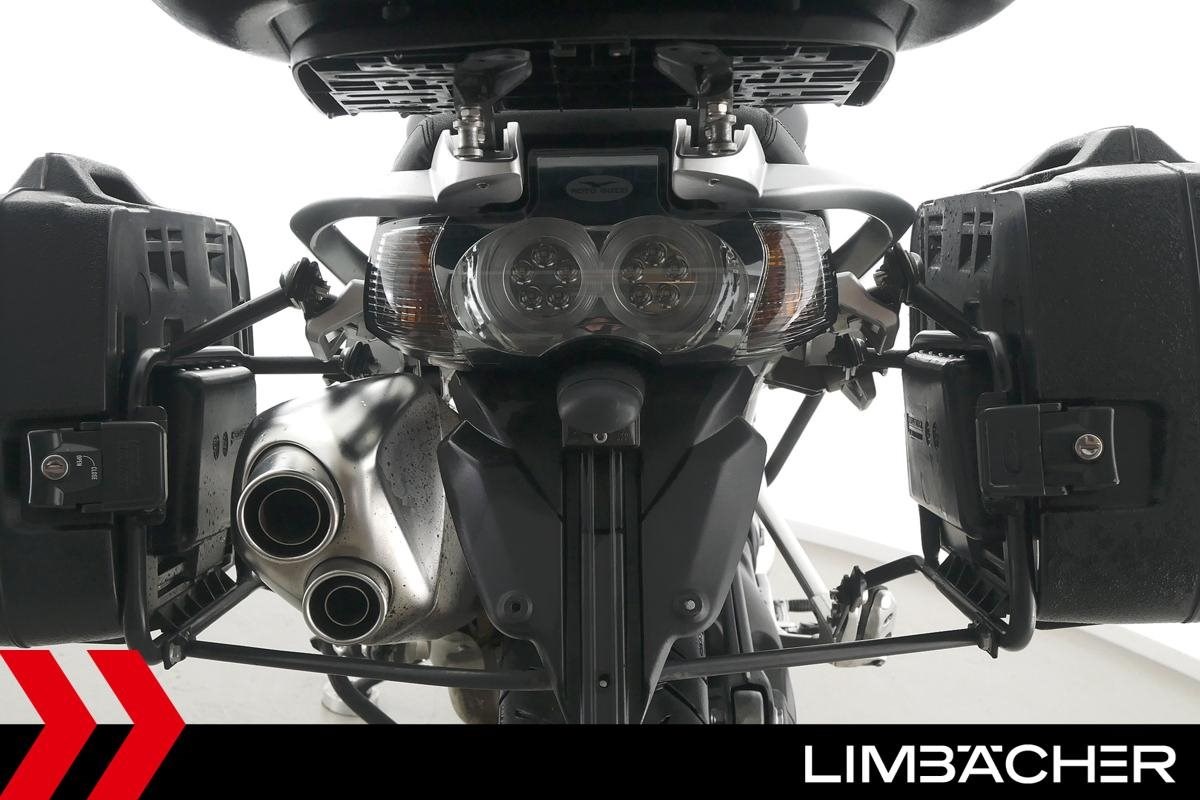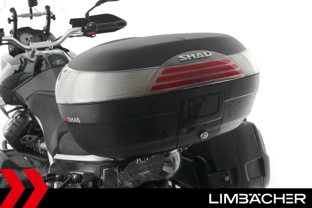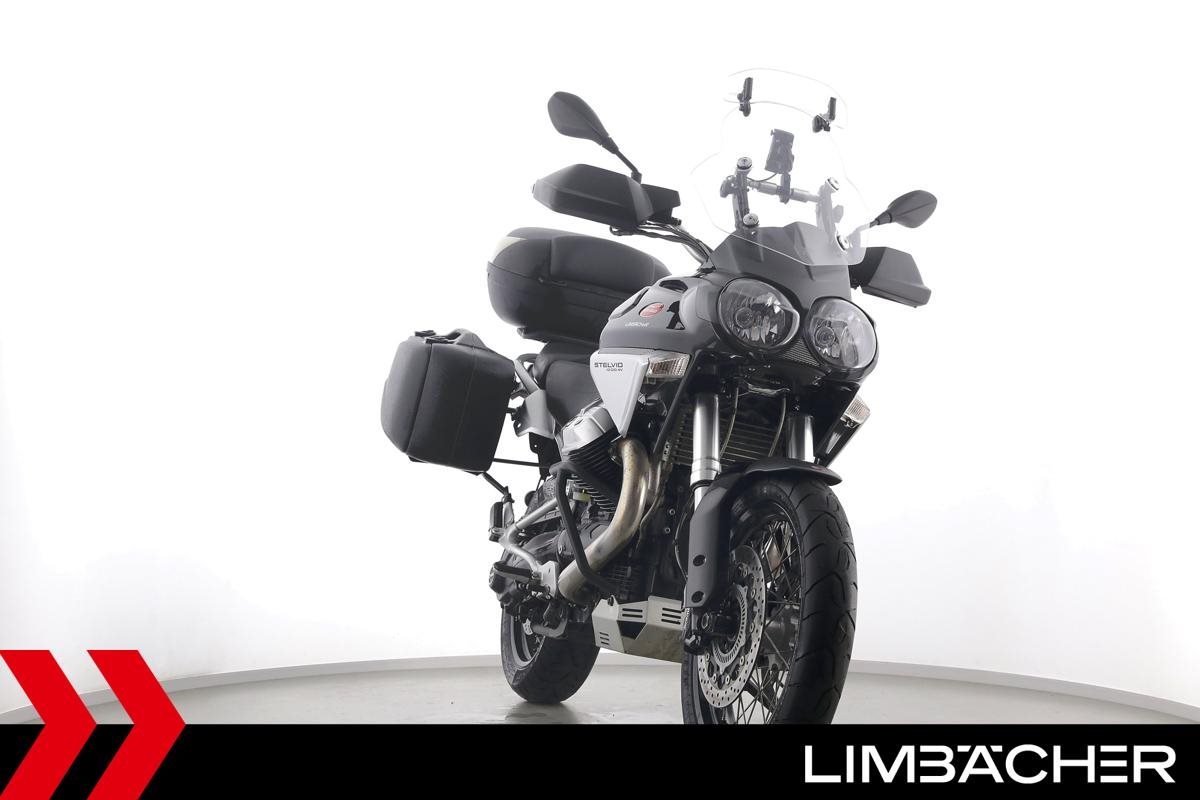 Fahrzeugzustand & Beschreibung:Eine Moto Guzzi Stelvio 1200 8V in gepflegtem Zustand u.a. mit Hepco&Becker-Koffern (Junior-Reihe) sowie Shad-Topcase.