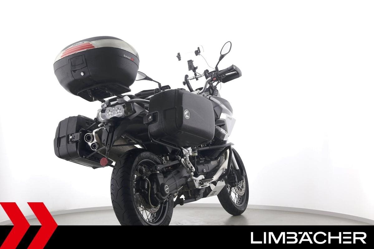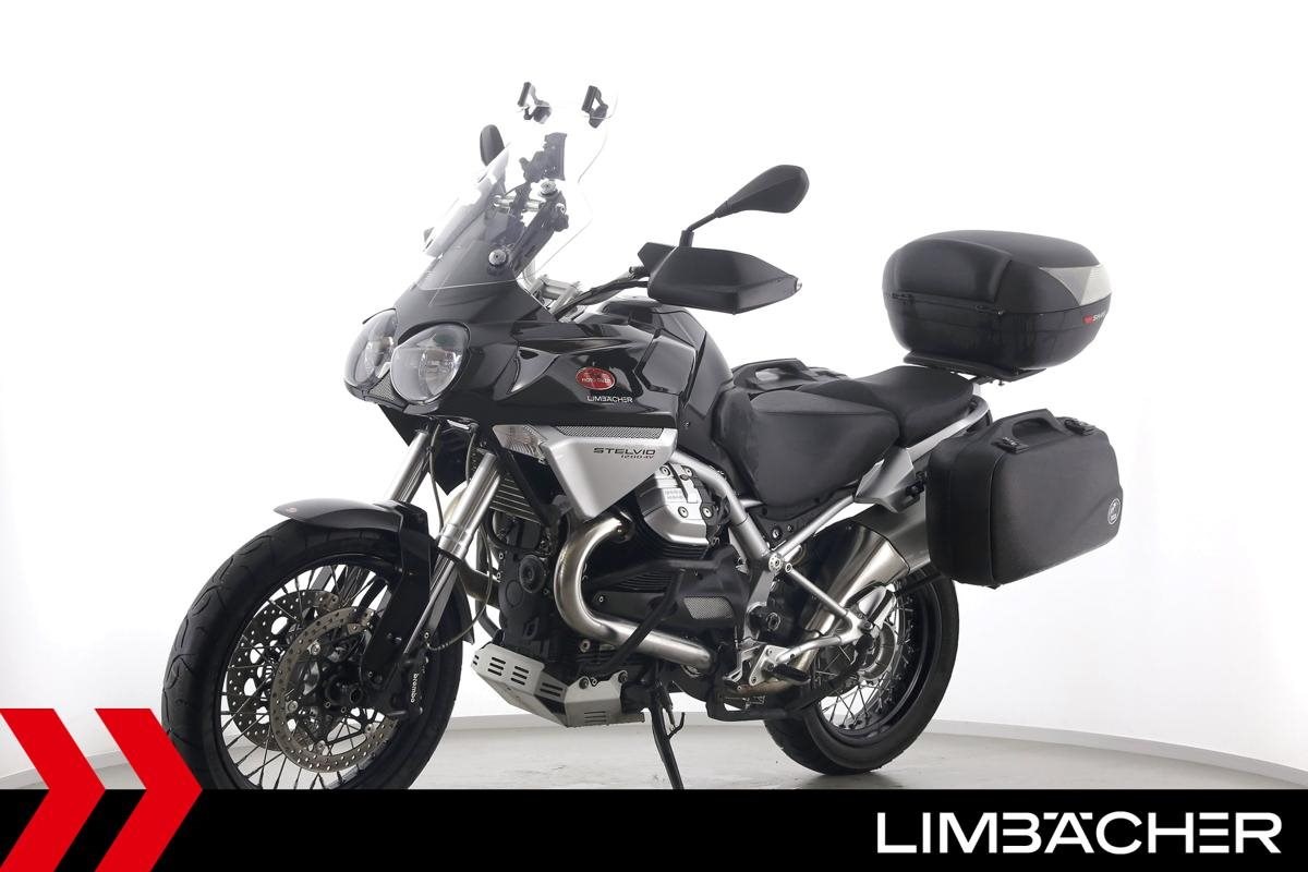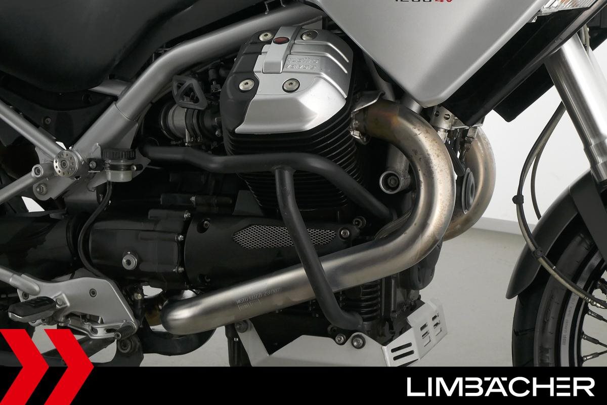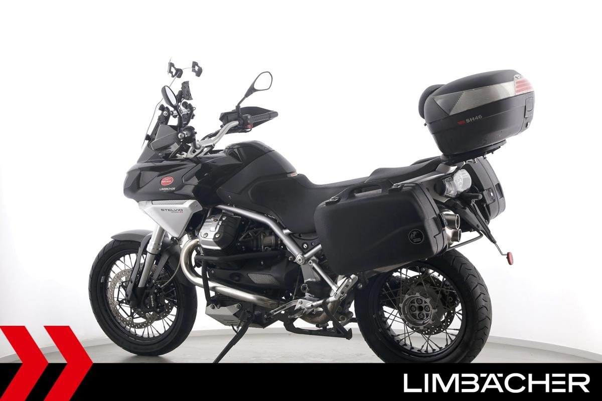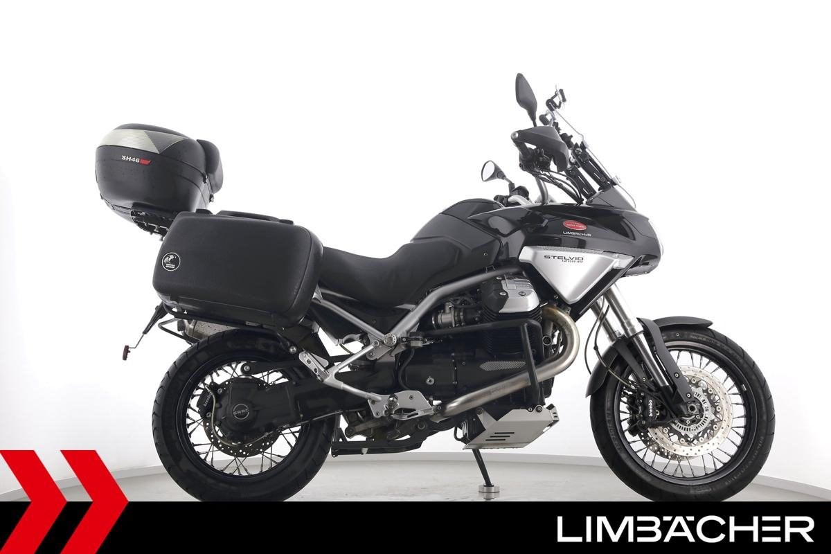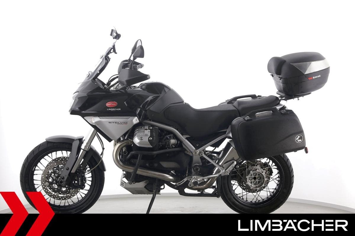 Fahrzeugzustand & Beschreibung:Eine Moto Guzzi Stelvio 1200 8V in gepflegtem Zustand u.a. mit Hepco&Becker-Koffern (Junior-Reihe) sowie Shad-Topcase.