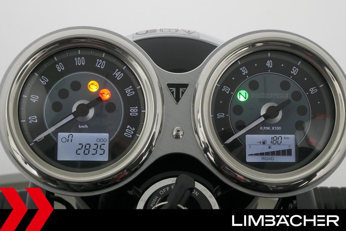 Triumph Bonneville T120 mit einer neuen Jahresinspektion inklusive 40-Punkte-Durchsicht. Alle unsere Fahrzeuge werden mit mindestens einem Jahr TÜV übergeben.