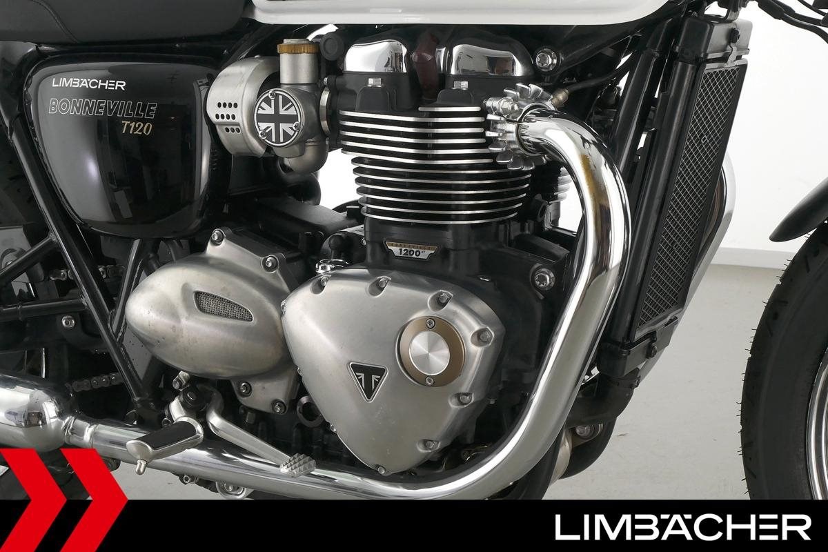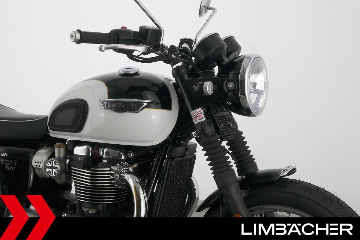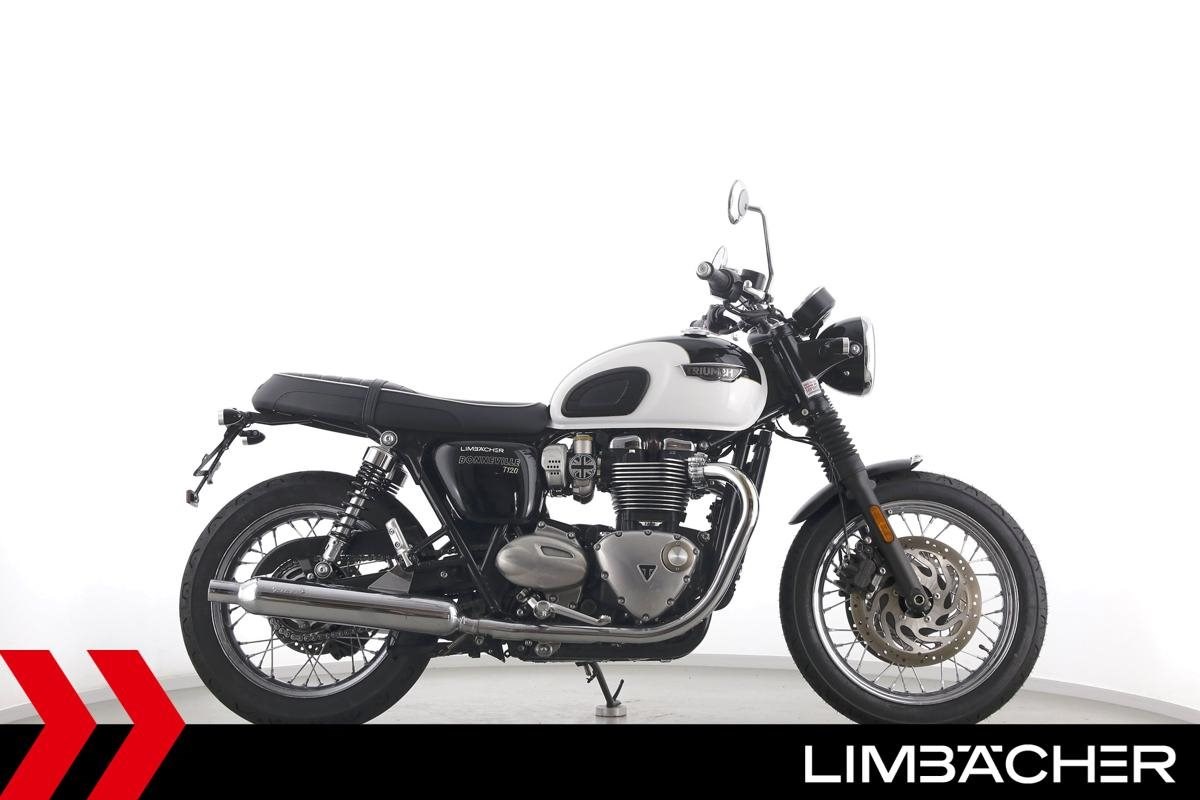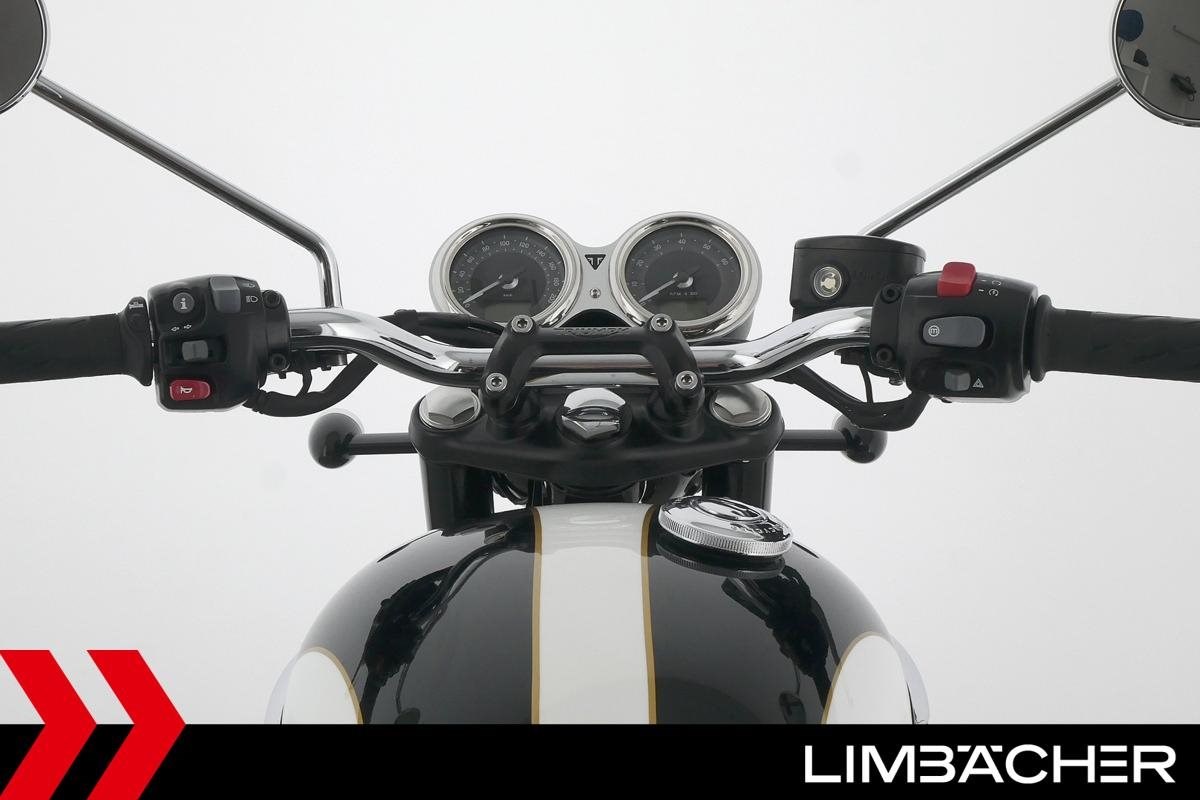 Triumph Bonneville T120 mit einer neuen Jahresinspektion inklusive 40-Punkte-Durchsicht. Alle unsere Fahrzeuge werden mit mindestens einem Jahr TÜV übergeben.