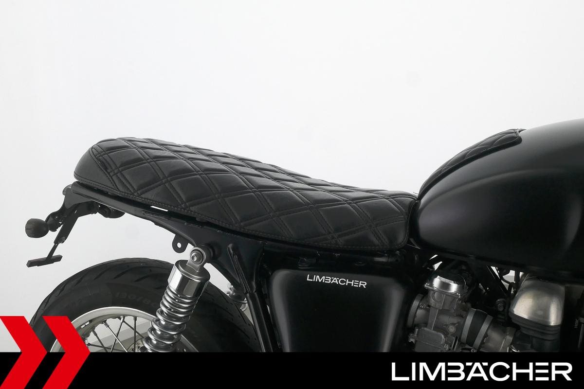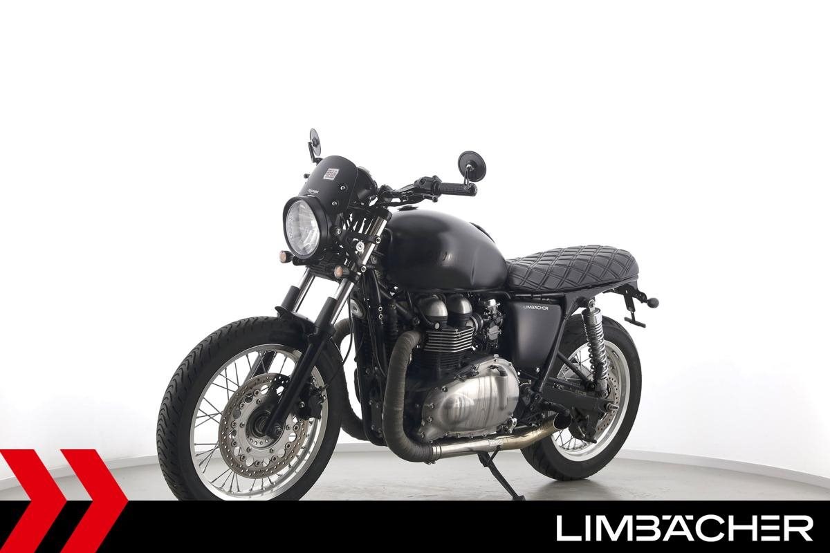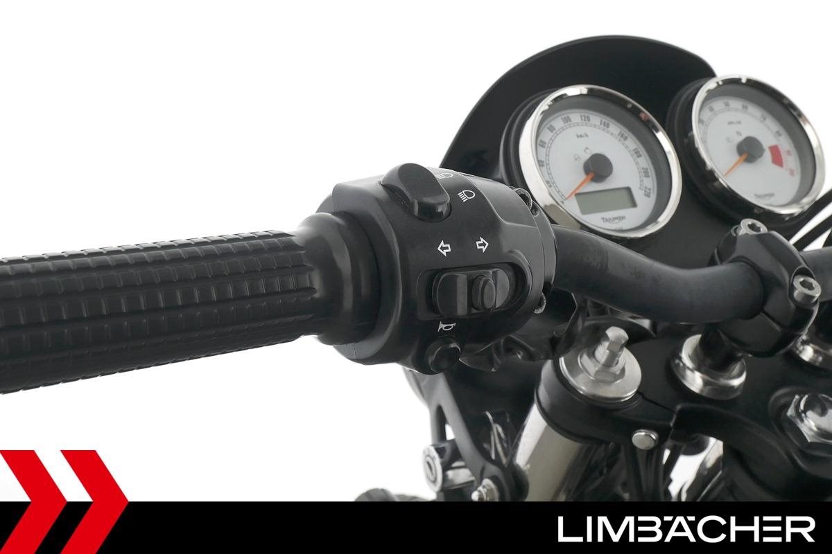 Triumph Thruxton 900 mit einer neuen Jahresinspektion inklusive 40-Punkte-Durchsicht. Alle unsere Fahrzeuge werden mit mindestens einem Jahr TÜV übergeben.