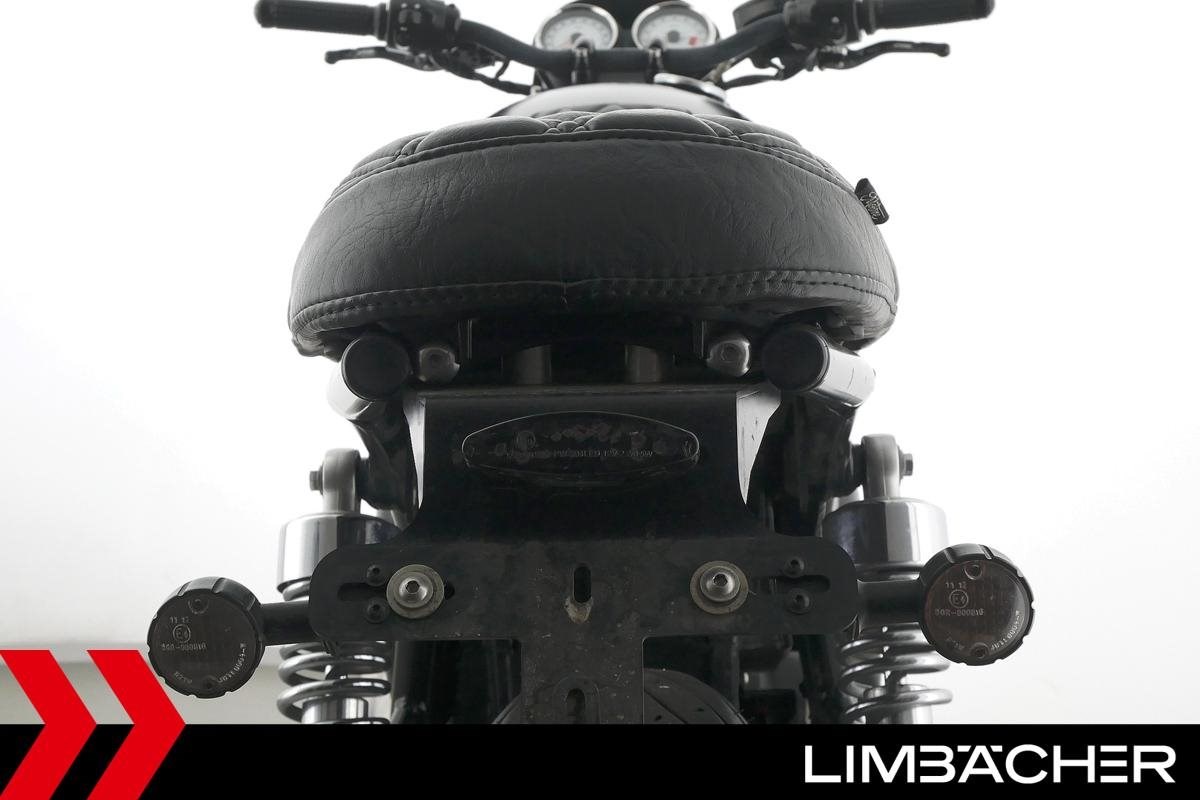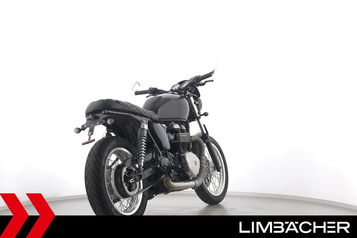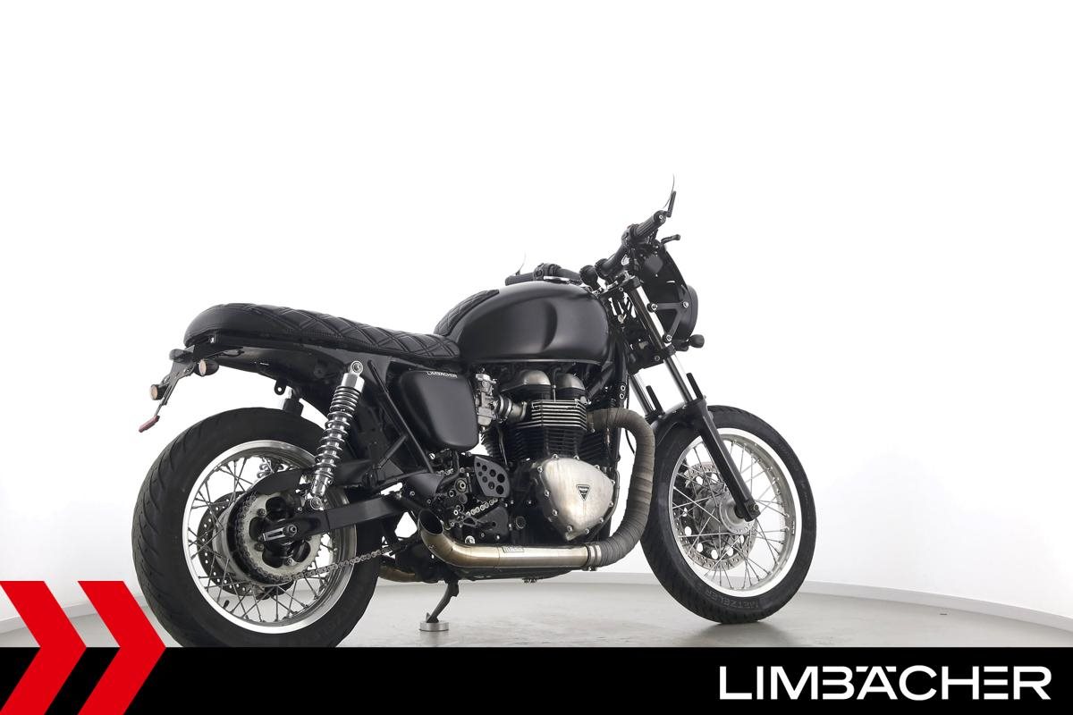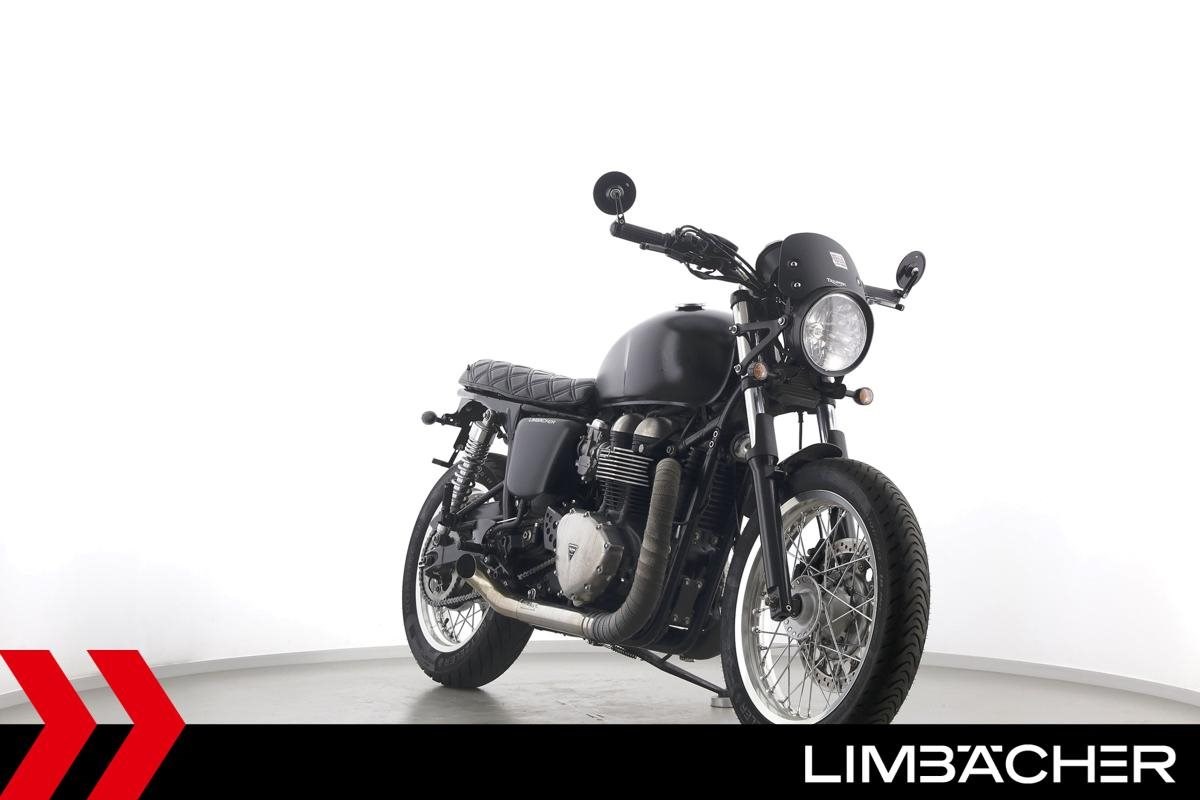 Triumph Thruxton 900 mit einer neuen Jahresinspektion inklusive 40-Punkte-Durchsicht. Alle unsere Fahrzeuge werden mit mindestens einem Jahr TÜV übergeben.